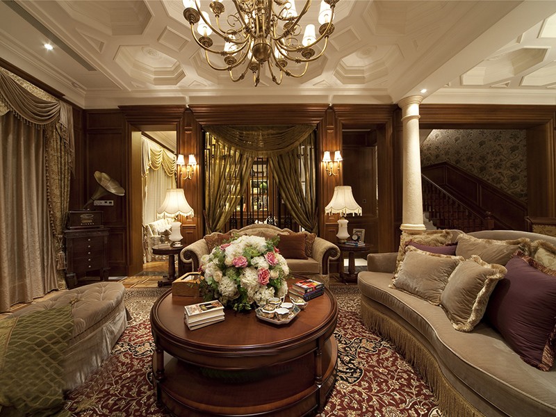 古典奢华欧式风格120平米复式loft客厅吊顶装修效果图
