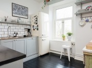 纯白色调完美的体现出北欧的乡村风貌,用圆形的餐桌搭配曲型设计的椅子,将整个空间的视觉调和的圆润无比。在客厅中设置书架,仿佛宅主是个好书之人,友人来访,也可以互相谈论书籍。