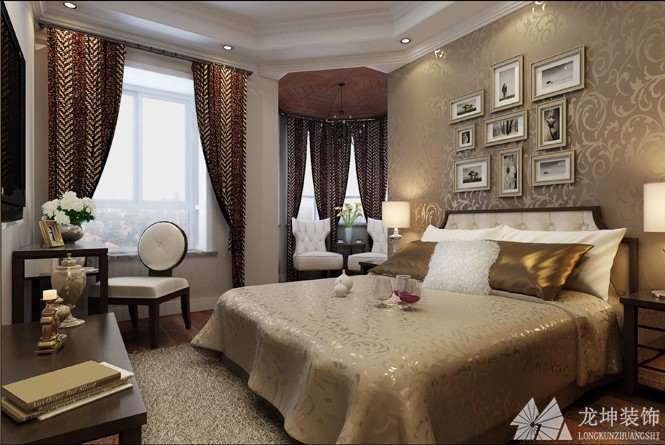 仿古砖的电视背景墙质感平滑而大方。空间中自然光线的采集与阴影的表演,配合墙面造型和顶面浮雕。