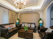 实木家具和皮质家具的结合,显示出了主人的稳重,墙面使用暖色调来调和整体空间的氛围。